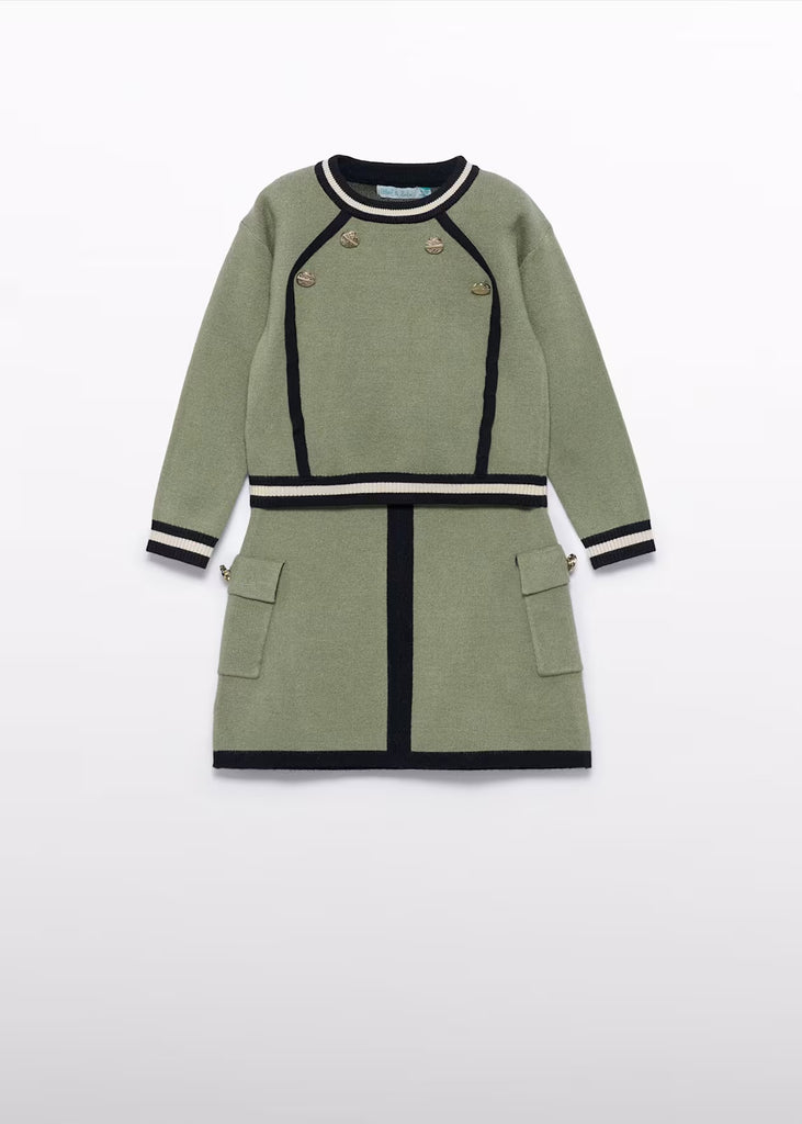 This charming two-piece knit set combines style and comfort for the modern child. The coordinated skirt features eye-catching contrast detailing that adds visual interest and personality to any outfit. Crafted from quality knit fabric, it offers a soft, breathable feel perfect for all-day wear. The thoughtful design makes mixing and matching effortless, giving your child versatile pieces that transition seamlessly to special occasions. A wardrobe essential that delivers both fashion-forward appeal and practical comfort.